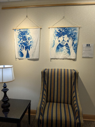 Although this show isn't open to the general public, the incredible residents at Mayo Clinic Charter House retirement living community will have 3 months to engage with my artwork at their corridor gallery space, Parkside Art Gallery. This show is made up entirely of my cyanotype work on various types of fabric and canvas. I made many of the pieces here in Rochester, but a handful of work was made while I lived in Grenada, West Indies. None of the work has been shown before. My work ranges from pure abstraction to figurative imagery, yet every piece is unified by its captivating blue tones—ranging from faded dusty hues to deep saturated Prussian blues, sometimes light cerulean, and occasionally accented by rust, green, brown, or purple. I embrace imperfection to invite curiosity, encouraging viewers to explore, unafraid, of what is seen as ‘different’ or ‘other’. My pieces serve as time-stamped imprints, capturing memories and the intricate relationship between humans and our environment, whether through natural elements or repurposed materials.
